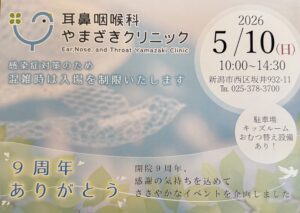2026.4.12 周年祭のおしらせ 皆様に支えられ当院も9周年を迎えることができます。 今年も周年祭を開催させていただきますので、奮ってご参加ください! 日時:令和6年5月10日(日)10時〜 詳しくは添付のちらしをご覧ください